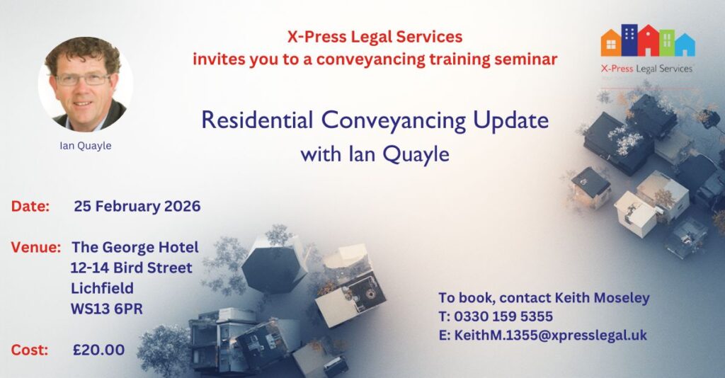 To book your place, email KeithM.1355@xpresslegal.co.uk or Tel: 0330 159 5355