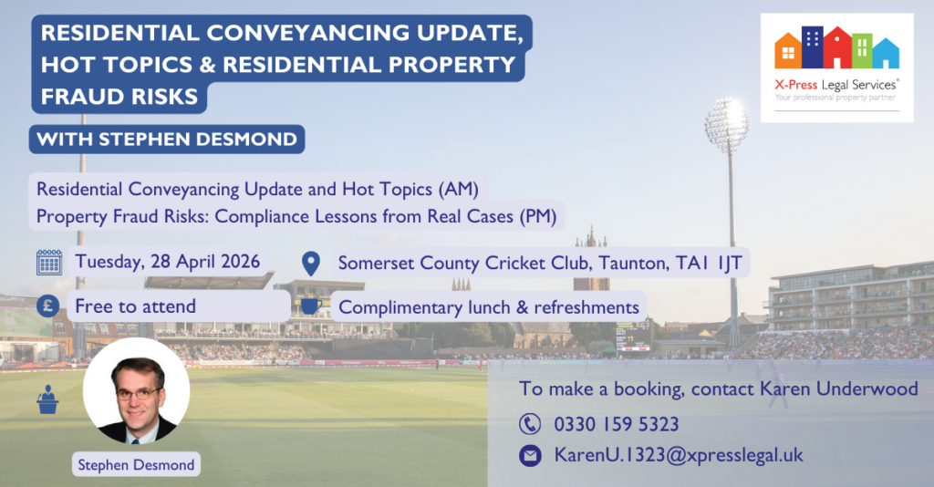 To book your place, email KarenU.1323@xpresslegal.uk or Tel: 0330 159 5323